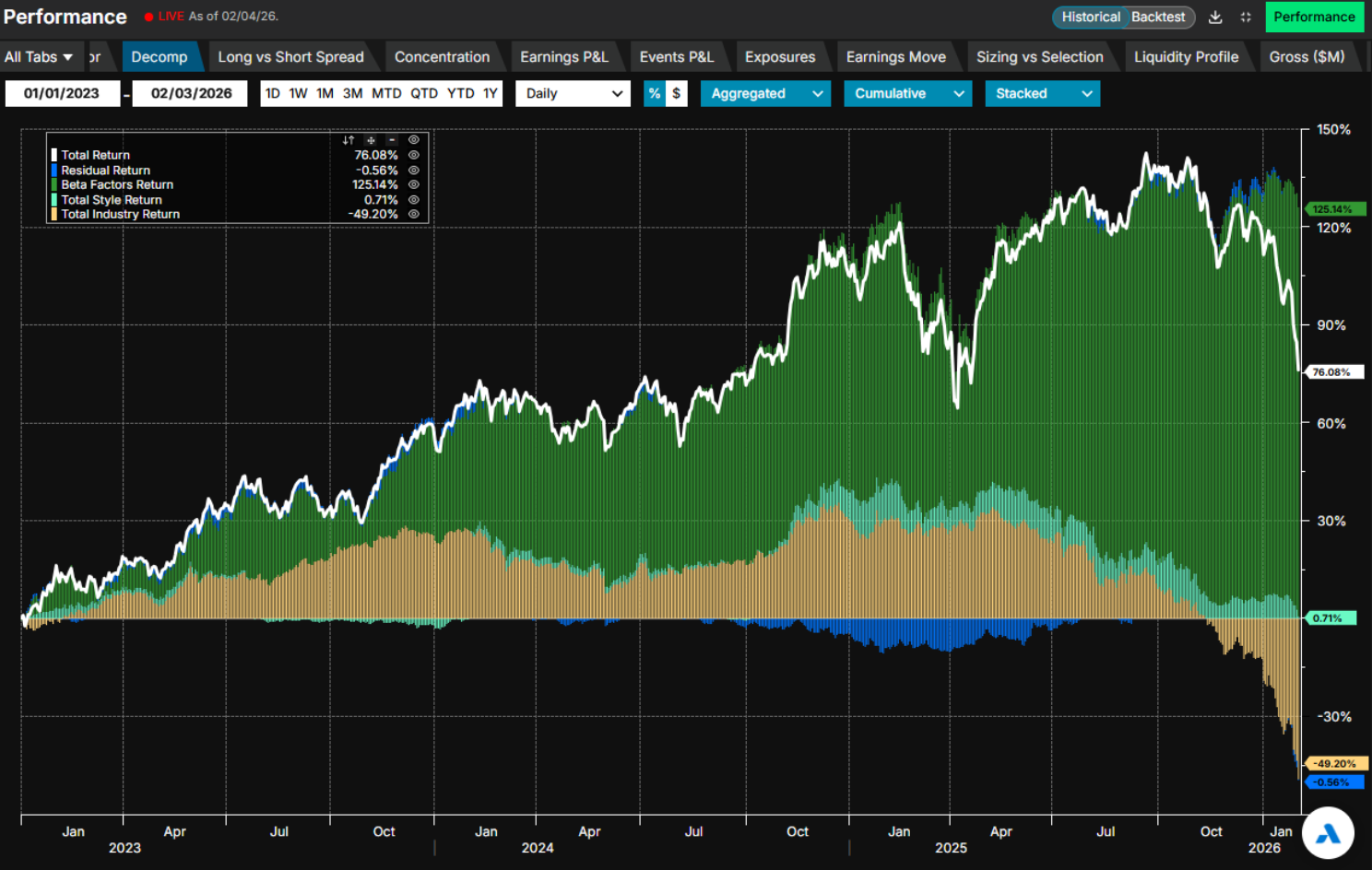 Aggregate Factor Contribution to IGV’s return 1 January 2022 – 3 February 2026