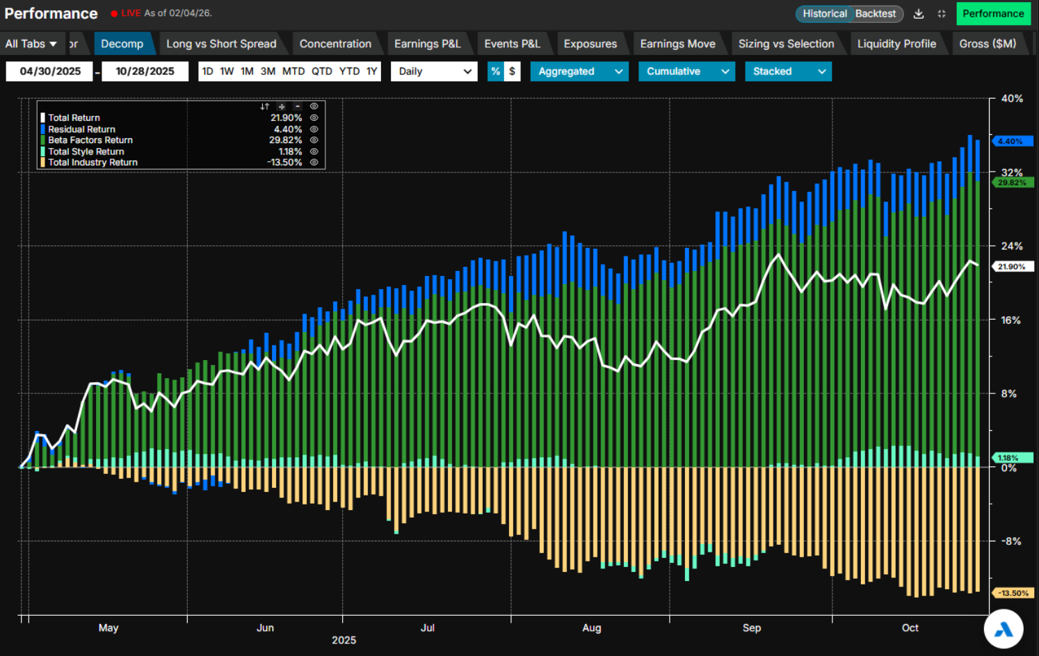 One question stands out: If the Industry Factor began deteriorating in April, why did IGV deliver strong gains between late April and late October? The answer lies entirely in market beta.